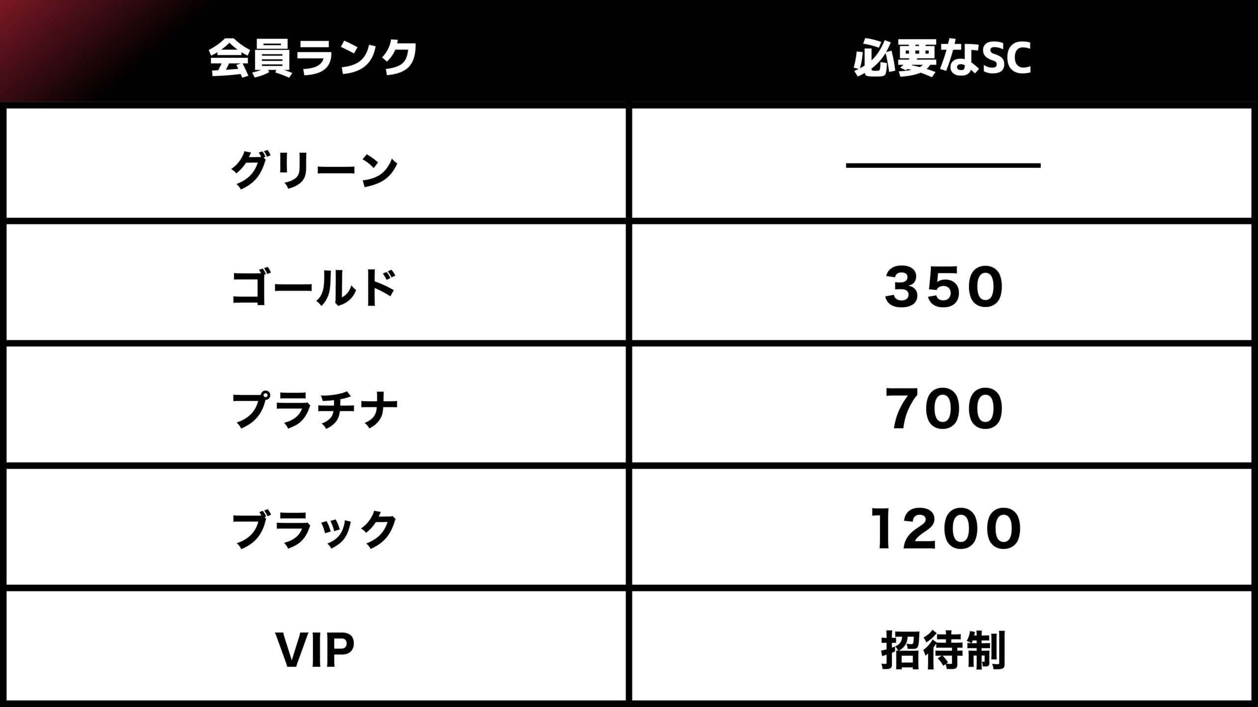※貯めたSCによって、毎月1日に会員ランクが決定します。